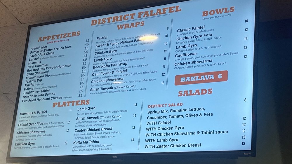 Aside from the delicious fare, District Falafel emphasizes sustainable practices with compostable containers and plastic-free packaging. With great reviews highlighting their exceptional service and clean dining atmosphere, it's more than just a meal here; it's an experience. Whether you're dining in or grabbing takeout, this establishment epitomizes casual dining with a commitment to quality.